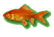 (Carassius auratus) eine metallisch glänzende orangefarbene Variante, die schon